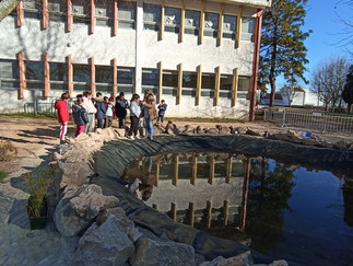 Dia 9 de fevereiro, os biólogos do 3.ºA investigam com toda a atenção os novos seres que vão viver no charco da EB do Parque – caracóis de concha preta, planorbis corneus red, dapnhia magna, papiro anão e najas guadalupensis. Depois do registo da observação destes seres, os investigadores fazem-se ao caminho, dirigindo-se para o charco. Nas suas margens, estes profissionais da ciência sentaram-se para ouvir “Há vozes no Charco”, de Raul Malaquias Marques. Depois destas vozes se silenciarem, era chegado o momento de dar mais vida ao charco e de aí depositar os seus novos habitantes – os papiros ficaram todos orgulhosos na margem de tão belo charco, as najas fizeram-se à água e os caracóis e as daphnias, com diferentes velocidades, correram a conhecer a sua nova casa. Aí, os biólogos sorriram e fizeram os seus mais secretos desejos… Há mais vida no charco!